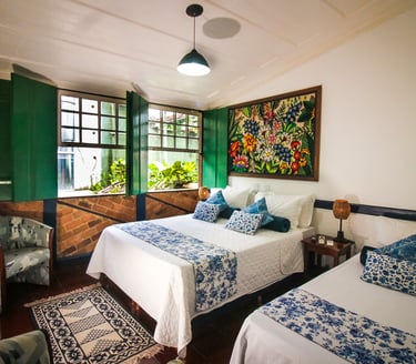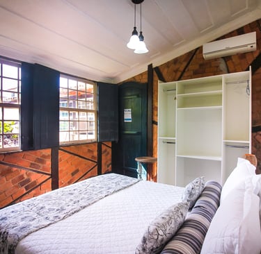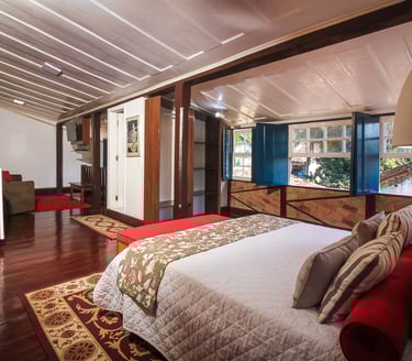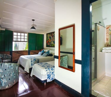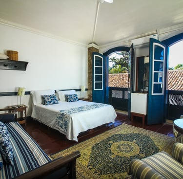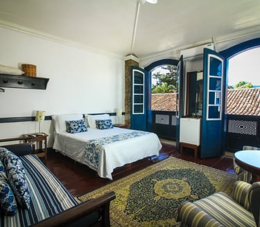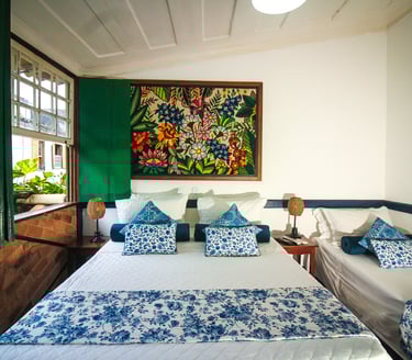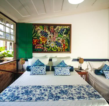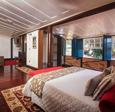 Acomoda até três pessoas em um ambiente de charme colonial, com uma cama de casal queen size e uma cama de solteiro. Equipada com enxoval de algodão egípcio, ar-condicionado, frigobar e televisão de tela plana, oferece uma experiência de conforto autêntico.